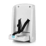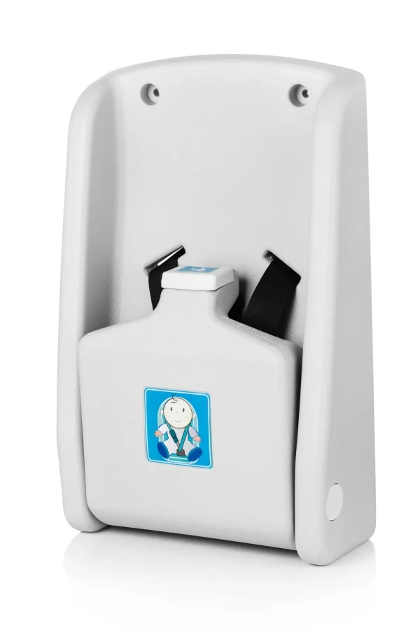 Easy to use, wall mounted child seat for public toilets.